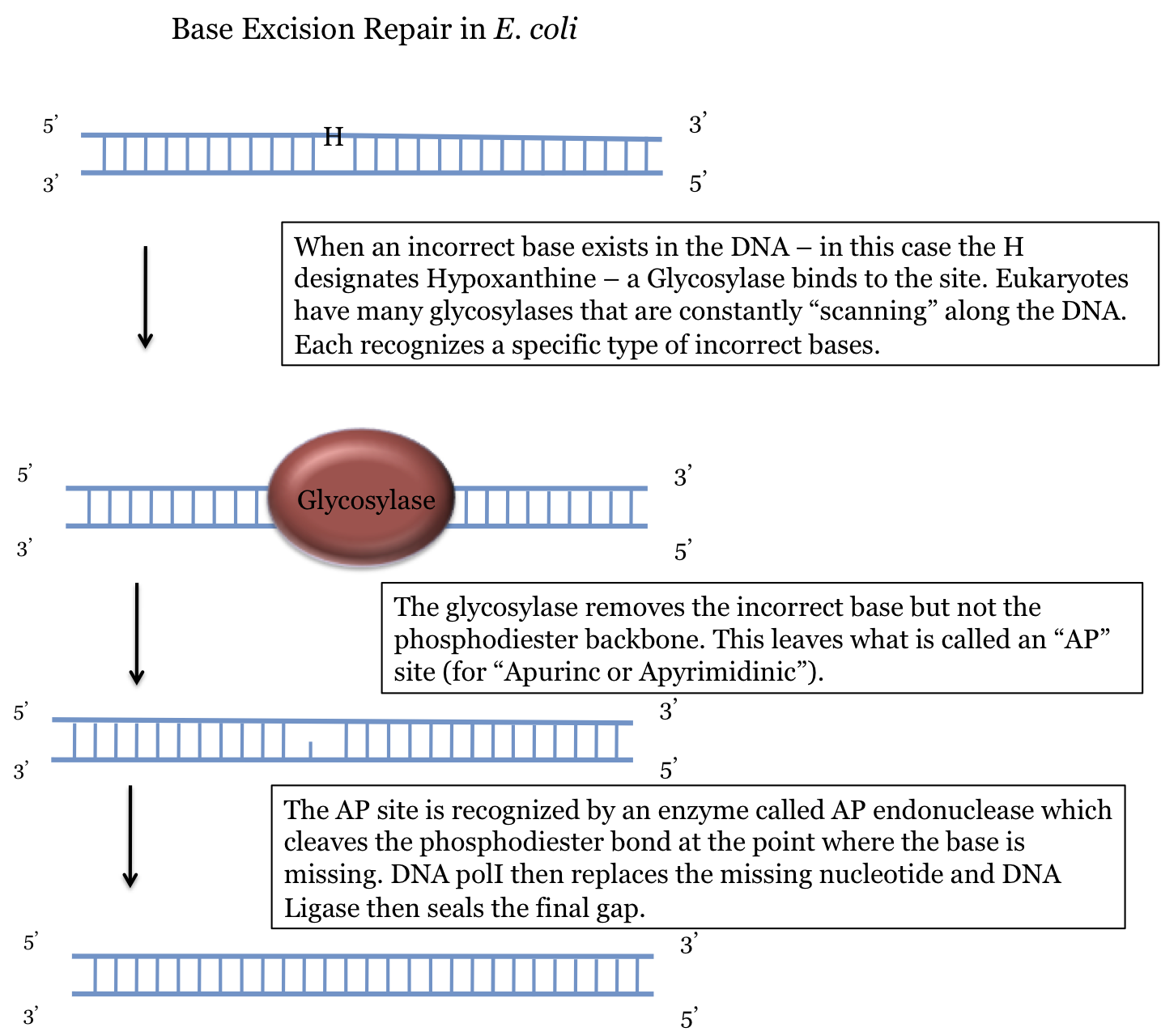 A video that covers base excision repair in eukaryotes (not E. coli).