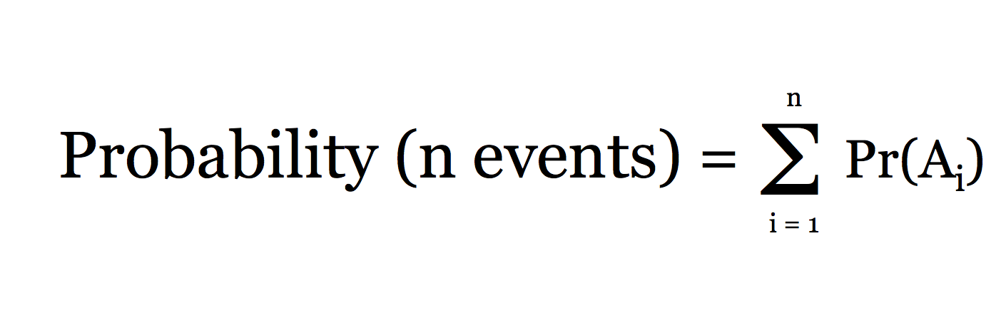 In the example of a die coming out even this would be Pr(2) + Pr(4) + Pr(6) = 1/6+1/6+1/6 = 1/2.