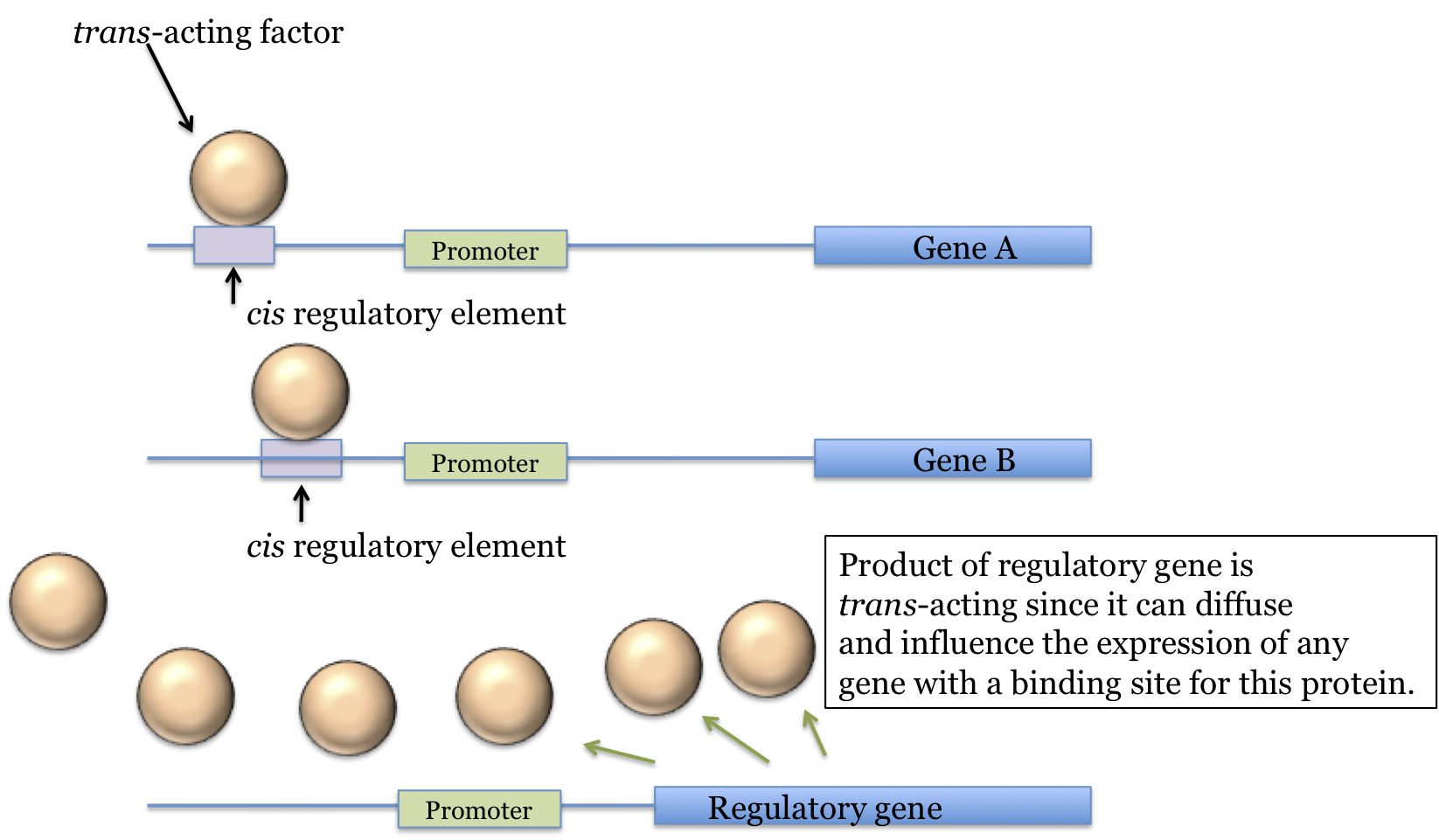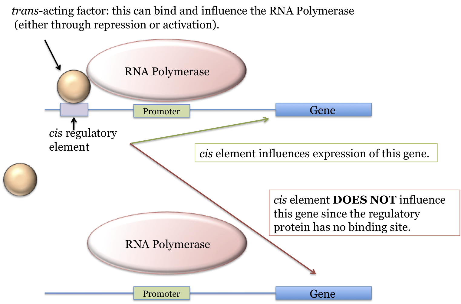 Two terms that you see quite often are "cis element" (or "cis regulatory element") and "trans-acting factor" (or just "trans Factor) so it is important to understand them.