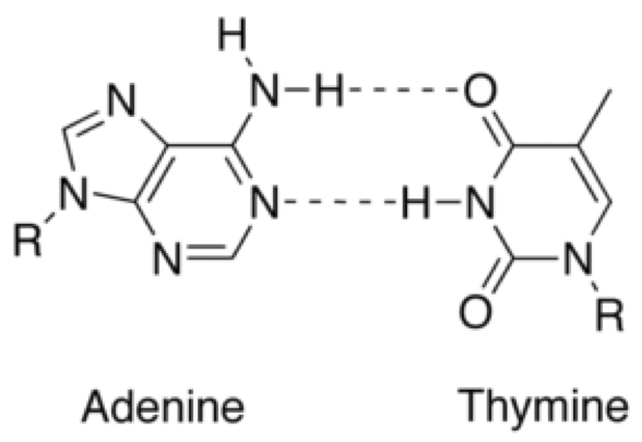 Double-stranded nucleic acid: Double-stranded nucleic acids result from the formation of hydrogen bonds between bases. When two bases are joined by hydrogen bonds they form a base-pair. The base-pairs found in DNA are referred to as Watson-Crick base-pairs and they are A-T and G-C.