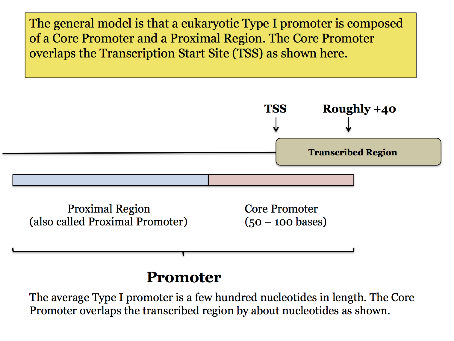 The main focus here will be on the structure of the Core Promoter. At the end we will briefly discuss the Proximal Promoter.