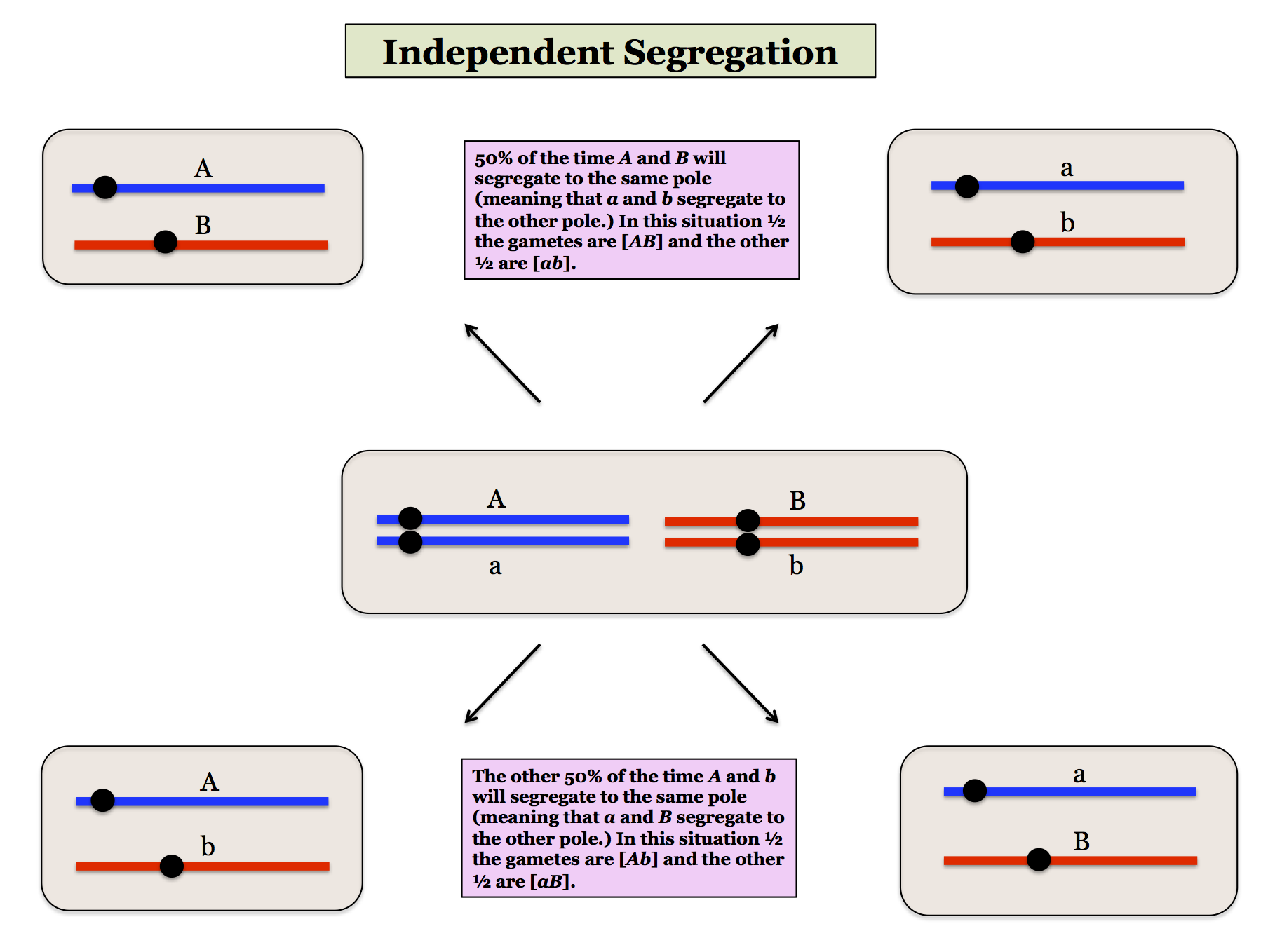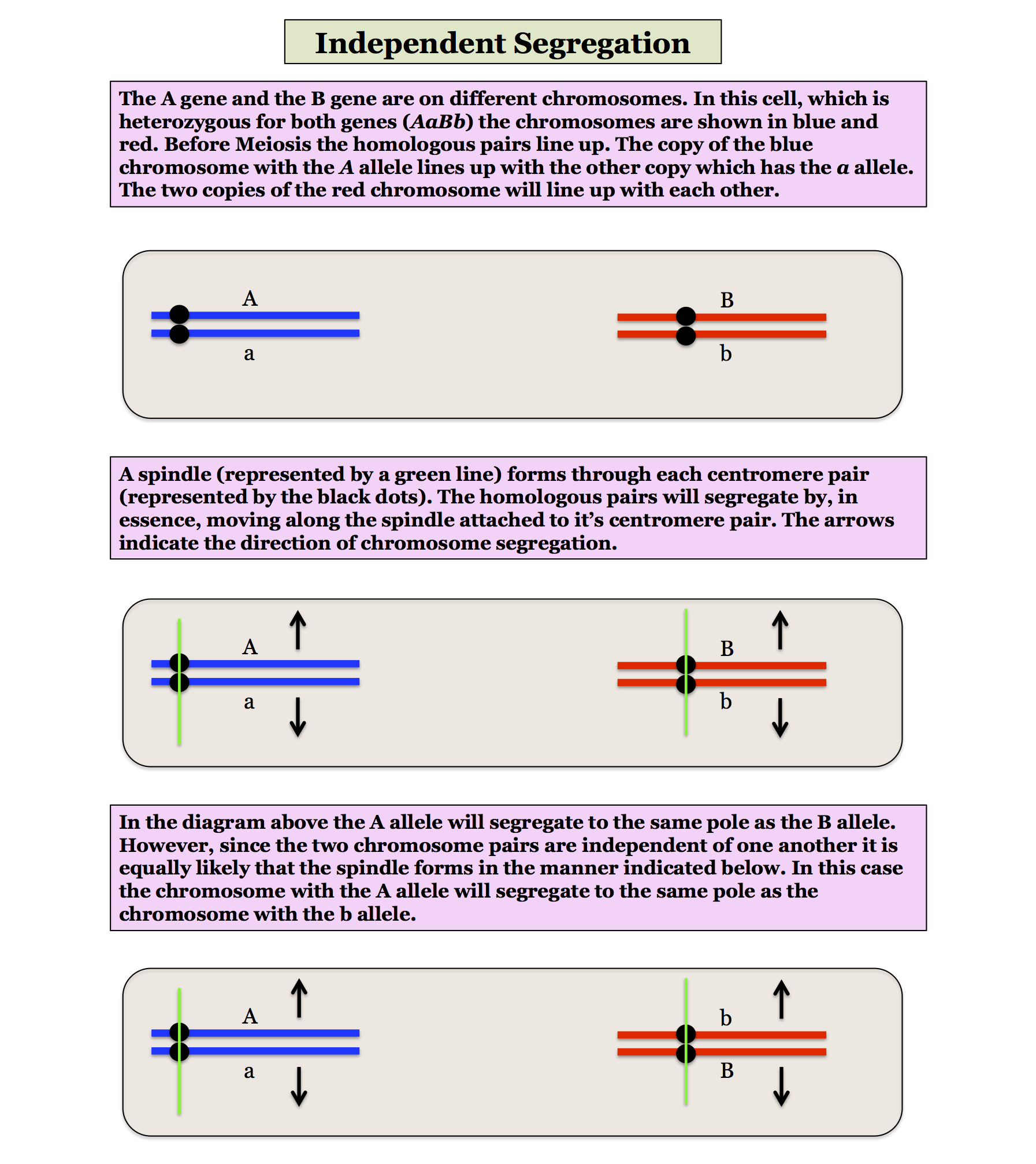First we will consider how Independent Segregation is a result of genes being located on different chromosomes.