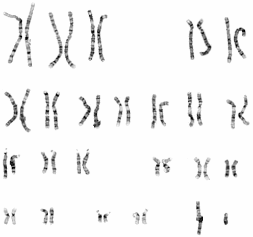 Karyotype is defined as the chromosome content of a typical cell or individual of a species. In humans this consists of two copies each of the 22 autosomes and a pair of sex chromosomes. This can be written in one of these two ways: