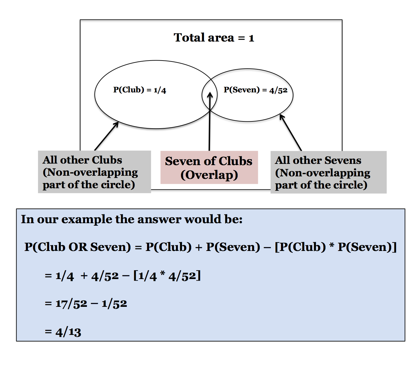 The following figures go through this rule and a formula that can be used in the case of two (but not in cases of more than two) non-exclusive outcomes.
