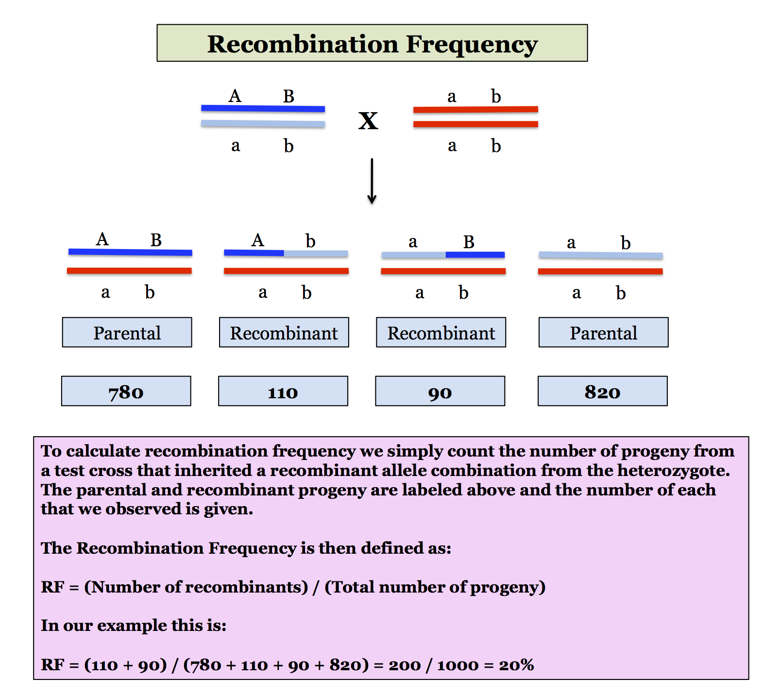 Recombination Frequency (%) = # Recombinant progeny/#total progeny